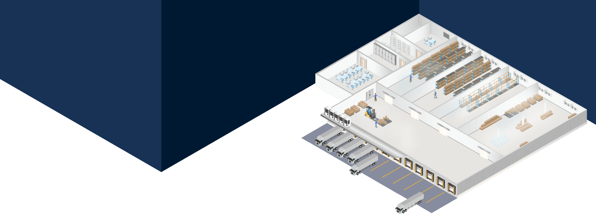 冷凍冷蔵区画を施設内に配備することができ、温度帯の可変区画の提供。季節や商品のニーズにあわせて、温度調整が可能な環境を生成します。 天井高や床荷重に配慮し、商品のサイズや重量にあわせて保管効率を意識した設計も可能。食品の鮮度や品質を維持しつつ、効率の良い物流保管を実現します。