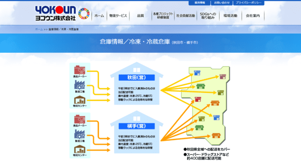 冷凍・冷蔵保管と物流を一体で提供している会社です。NH3/CO2を使用した環境配慮型の冷却システムを導入しているのも特徴で、環境負荷への配慮を行い、複数の温度帯に対応する保管体制を採用しています。